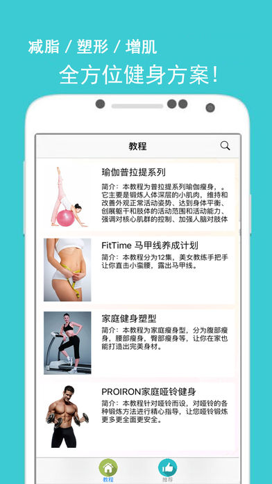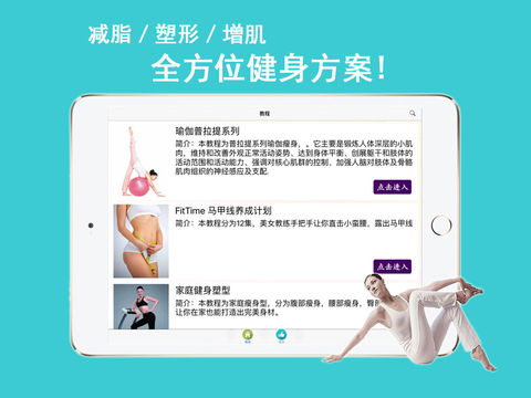 中国最优秀的女性健身塑性软件,精心挑选了包括瑜伽、家庭健身在内的丰富多样的健身形式,专为中国女性量身打造。 【产品简介】 一款易用专为女性设计的健身健康类应用程序软件。风格清新,主要包括健身视频教程、每日训练,视频动作预览,网络视频,以及视频收藏功能。 软件包含大量家庭就可以完成的动作,让你轻松掌握动作要领,并配备大量健身相关资料,健身从现在开始,跟随作者的节奏动起来!软件宣言“身体是革命的本钱”,不管你是学生、or上班族、or健美爱好者等等,安装本软件,统统帮您搞定,防止猝死,生命在于运动,打造美好身形。 软件提供专业教练安排的任务计划,在今日训练中可以进行一次训练,每次训练动作不同,间隔休息为15s,同时您可以在动作列表中方便的查看任何动作。 设置提供了丰富的功能,定时提醒,和修改您喜欢的练习背景和背景音乐。 为自己投资,快来健身吧!!!可爱的女性朋友们,为了完美的身材!!! 【产品特点】 为什么选择女性健身必备,爱他七大理由! 1.健身动画:助您轻松掌握健身动作要领; 2.今日训练:打造属于自己的训练计划; 3.健身视频:海量健身视频,让你和健身牛人学健身。 4.更多自定义: 自定义背景音乐和练习背景 5.清晰的界面: 简洁干净的界面让您觉得更加舒适。