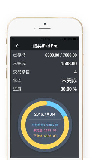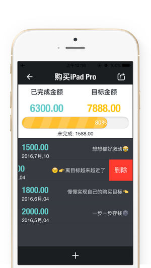 DailySavings - 快捷方便的储蓄目标管理 - 保持跟踪您的储蓄,存储、存款更多! DailySavings跟踪您的经常性开支,收入,甚至您的股票·投资·收益组合,以显示您现在有多少金钱可以去购买、投资、支配...... 根据您的需要,您可以有许多不同的储蓄目标;无限制的添加新的目标并去努力完成! 【易于使用】 例如: 我要买一辆代步车,总价40万左右。 1,先使用 DailySavings 创建一个买车计划/储蓄目标 2,有可支配的资产时,添加一笔又一笔的存款 3,进度条会慢慢地填充满,并且我可以知道 当前已经完成的进度 & 还未完成的金额有多少 4,完成后会自动归类到已…