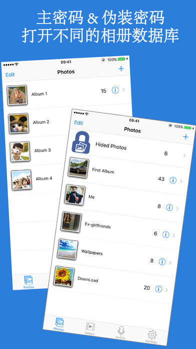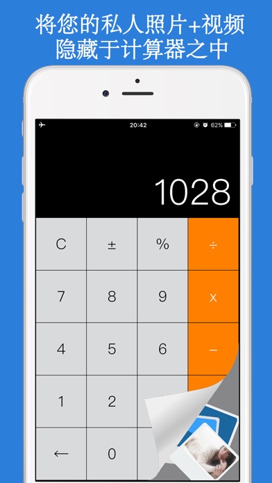 这不仅仅只是一个计算器,它还是一个强大的私密相册保险库! Calculator+ 可以安全保护您的私人相片和视频以及录音。正常打开应用时,它是一个简单的计算器。而当您输入您设好的主密码,并按“%”按键解锁后,它就是一个功能强大的相册视频保险库! Calculator+ 功能强大,性能卓越! * 使用计算器伪装,为个人隐私穿上华丽的隐形战甲; * 使用主密码锁住应用,没有您的密码,任何人无法开启应用; * 应用内支持创建自定义文件夹,您可以给不同的相片视频分类; * 不同文件夹内的相片和视频可以随意相互移动; * 内置功能强大的录音机,可以直接录制并编辑您的私人录音; * 使用苹果系统提供的分享功能,您可以在其他应用中直接把图片存储到本应用; * 使用iTunes方式或者Wi-Fi方式从电脑导入相片视频到手机中; * 独特的隐藏列表可以保存您最隐私的资料; * 可以通过Wi-Fi通信方式直接在电脑端浏览本应用中的文件; …… 幻灯片浏览功能 * 左右滑动浏览切换相片视频; * 拖拽放大和缩小图片,细看局部特写; * 全屏预览播放; * 在幻灯片浏览模式中提供了多种选择:背景音乐、过度模式、循环模式等。 上传备份和传输相片视频 * 你可以通过iTunes/Wi-Fi方式把手机中的相片和电脑中的相片进行同步传输备份; * 你可以通过系统自带的分享功能将图片视频等分享出去; * 你可以直接从系统相册或者别的应用中打开此应用并将需要的图片插入该应用中。 伪装密码功能 * 如果您这款伪装计算器不小心被人发现了,这个令人讨厌的人可能会恳求你打开来看看。这时您只需要告诉他你预先设好的伪装密码,输入伪装密码打开的应用看到的是完全不用的相册! 抓拍入侵者功能 *如果有人发现这款计算器是隐私相册并多次尝试输入密码以解开应用,那么应用会自动抓拍入侵者头像,留下其犯罪证据! 分享功能特性 * 导出相片到系统相册中; * 直接通过邮件发送图片给朋友; * 复制图片或直接将图片复制到信息框中回复朋友短信息; * 可从其他应用中直接打开该应用。 HiPhoto 支持大量主流媒体格式 * 相片:jpg, png, bmp, tif, tiff, jpeg, etc. * 视频:mov, mp4, m4v, mph, etc. * 音频:mp3,wav,aacf, etc. ******************************************* 你的所有相片和视频等文件都仅仅存储于您的设备中,这是100%隐私的。所有数据不会上传到我们的服务器,我们没有任何能力可以获取到您的资料。请百分之百放心使用!