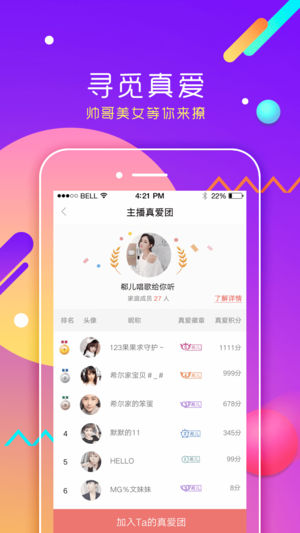 【平台特点】 • 泛娱乐属性为基础:互联网直播的大潮之下,汇聚多元属性的内容是平台有利的竞争力。聚星的高接纳度将把更多的直播内容网罗帐下,让整个平台更具活力; • 明细的特色榜单:根据平台运营策略提供合理且细分的排行榜,包括明星榜、富豪榜、人气榜、热搜榜等。并且平台内的任何活动在每个节日均有丰富多彩的活动和对应榜单; • 更丰富的玩法:平台提供火拼、Vip、座驾、丰富的送礼特效以及各种小游戏,使平台玩法更丰富,大大增强主播与用户、用户与用户、主播与主播之间的互动; 【特色功能】 • 海量主播:主播来自五湖四海,各地主播汇聚一堂; • 玩法丰富:看直播、玩游戏两不误,更有…