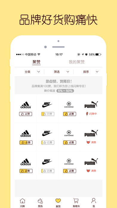 【简介】 闪电特卖,一款专注正品特卖的时尚购物平台,新用户下单最高享200元降价优惠,折扣后再享闪电降,购物再得闪电股,可抵现,可升值。欢迎与各大特卖电商比价,如:唯品汇、淘宝、天猫、卷皮、折800、京东、蜜芽等,从此购物更实惠。 【品牌特卖】 Nike、Adidas、New Balence、Lee等2000+国际知名运动服饰品牌商城不定期清仓抢购,闪降专区折后无底线再降价,一次帮你省到底!每天10点全球潮牌准时更新。 【限时秒杀】 每天一款一元夺宝秒杀商品限时上线,让你抢个够。 【闪电砍价】 底价狂砍模式,打破成本,邀好友协助砍价,1元得时尚大牌。 【时尚正品】 正品好货:专业买手为你严选把关,品牌官方授权,保证100%正品,支持专柜验货,购物无忧! 无忧退货:7天无理由退换货,安全无忧,购开心! 【联系我们】 官方客服:400-0980-999 官方网址:www.shandjj.com 官方微信公众号:@闪电降价 官方微博:@闪电降价