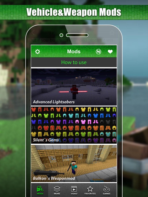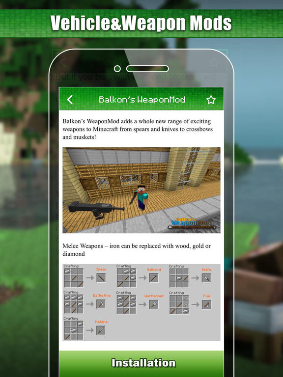 Have all of the Minecraft Mods in the palm of your hand! MC Vehicle & Weapon Mod allows you to add all the Mods you want without any problems, there are no limits! *** Not affiliated with MineCraft or Mojang. ***