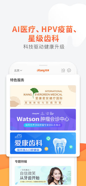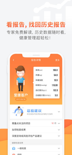 【极速约体检,及时看报告】时间、分院自由选;电子报告及时看,专家坐镇来解读。 【分院信息簿,您的随身地图】分院环境、位置全了解,一键导航。名医专家健康讲座等活动等你报名。 【IBM Watson、HPV疫苗、高端防癌体检】以创新科技提升生命质量,获得国际主流健康服务! 【有人“管”的体检】二次会诊、就医绿通,深度筛查+阳性追踪体系,将您的健康一“管”到底! 【齿科、挂号,更多服务更走心】爱康齿科,星级技术与体验。三甲医院门诊挂号,热门科室智能约。 ~~~更新动态~~~ 1.优化【首页】健康服务模块; 2.优化【首页】专题特辑展现模式; 3.优化【查看报告】功能; 4.优化已知BUG。 联…