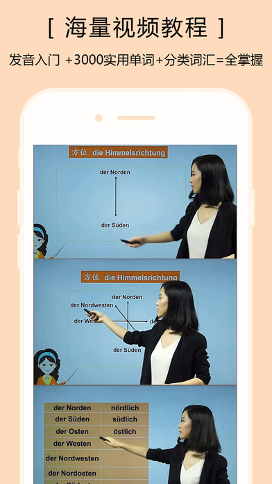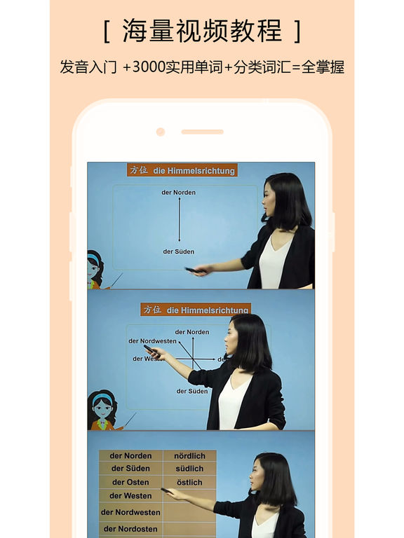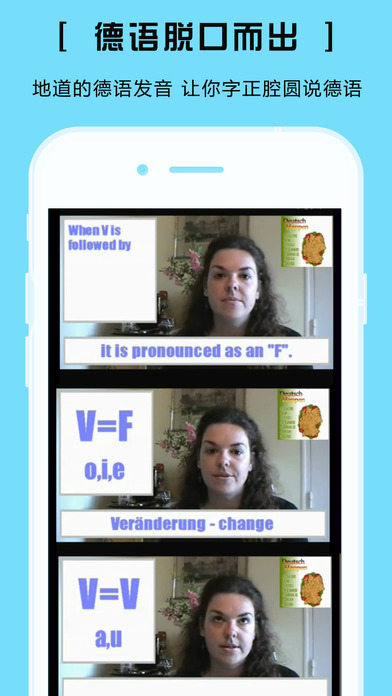 德语发音专业版是一套针对中国德语学习者特别设计的音频教育软件。 包含有声德语词典 、日常生活德语 ,好听的德语歌曲,是德语学习的必备软件. 零起点零基础,轻松带你入门 . *碎片化时间利用,走路听,坐车听,睡前听,想怎么听就怎么听! *真人播音,专业指导,快捷方便,轻轻一点,循环播放,炫酷复读! *疯狂口语、 职场交流,各大人气平等随你挑! *在线听! 循环听!边走边听!解放双眼,轻轻松松随身听! 零基础德语入门,掌上德语学习机!
