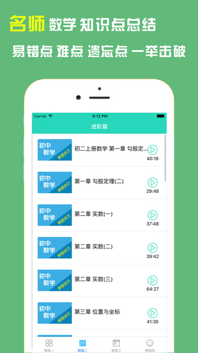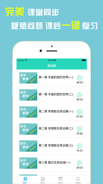 【汇集众多精品初中数学课堂教学视频】 视频包括初一、初二、初三各章节课程讲解,真题练习 -涵盖了初中数学各章节内容的知识点总结; -----十分适合初中学生、教师使用。 想学好初中数学的同学们,可以跟着教学视频一起学,祝同学们早日学有所成!
