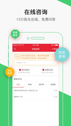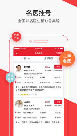 全国医院预约挂号网平台。患友不仅可以在名医汇免费预约全国范围内的号源,根据名医排行榜,选择适合自己的医生;还可以进行在线咨询医生、电话咨询医生、诊后就医分享、预约陪诊服务等。 目前,名医汇已覆盖全国7000多家公立医院,80多万医生,覆盖全国39个省份,105个核心城市,近百万患友进行了体验分享。核心服务有预约预约挂号、名医挂号、预约手术、在线咨询、电话咨询,助您轻松看名医。 1、名医排行榜: 百万患友诊后分享点评,打造名医排行榜。患友可依据“按疾病找”、“按科室找”等导航,查看相关医院及科室排行榜,精准查找适合自己的医生/医院。 2、预约挂号: 全国范围内39个省份3000多家…