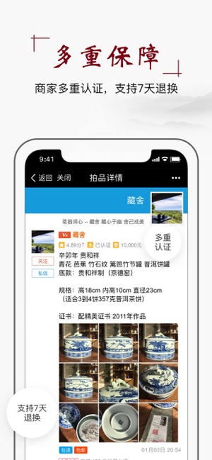 微拍堂,基于移动端的文玩类垂直电商,专注线上拍卖交易。 2015年4月上线至今,打破传统文玩产业的局限,洗牌文玩市场的运营规则,引领文玩产业完成了线上交易模式的完美转型。 用户数据:千万用户,月活跃突破2000万 简单易用:遵循微信习惯,用户体验佳 形式多样:普通竞拍、一口价和多人中拍 专场专题:自由定制,官方引流,大量曝光 支付便捷:支持微信、银行卡、转账汇款 在线客服:即时沟通,处理争议,解决问题 【为你精选】 品质保证,货好不怕选。这里都是百里挑一的靠谱商家。 【分类集市】 不必东奔西走,这里应有尽有。上百种文玩种类,总有你喜欢。 【0元捡漏】 统统0元起拍,眼尖的你一定能捡到漏哦…