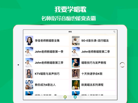 【精选海量唱歌教学课程,轻松学唱歌,实现你的艺术梦想】 《一起学唱歌》非常实用,传授丰富有效的唱歌技巧,让你终身受益匪浅,我们旨在帮助大家更方便的学习歌唱技巧!从最基本的知识和技巧开始讲解,深入浅出,适合各个水平基础的人学习。 名师授课,细致讲解,跟频练习,帮助你解决高音上不去、低音下不来、气息不够用、唱歌容易累、音色不好听、没有表现力的问题。简单学几招,让你在K歌时大显身手。 爱唱歌的各位麦霸现在就拿起你的麦克风跟我们一起唱歌喊麦做发声练习吧,让我们一起用心歌唱,追逐梦想!