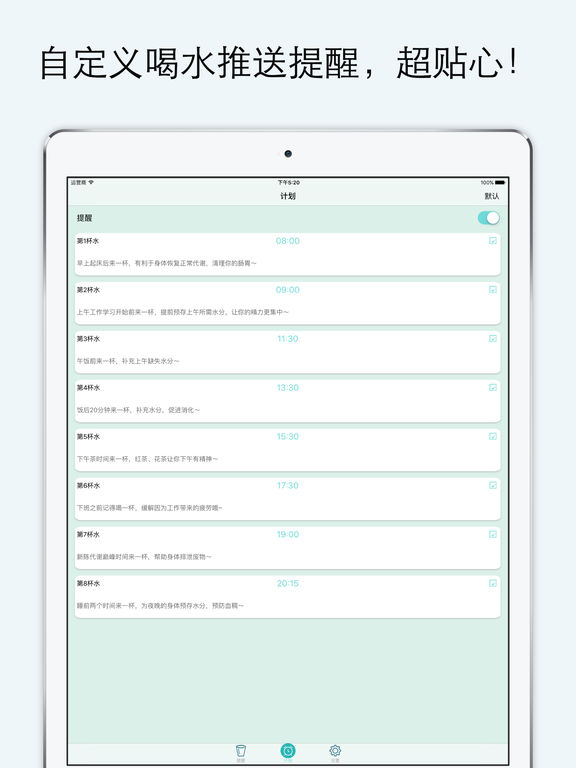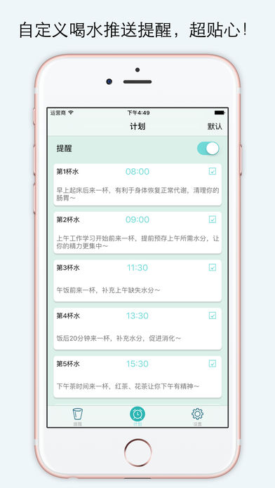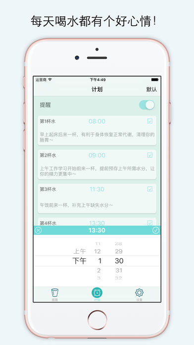 最后一天免费!快来下载吧! 喝水提醒是一个用于每天提醒你喝水的app,它可以帮助你养成规律的喝水习惯,从而检测和提高你的每日喝水量。 众所周知,水是生命之源。你可以一日不吃饭但不能一日不喝水。水是运输营养和氧气到细胞的载体。勤喝水不仅可以帮助减肥,美容养颜,让青春永驻还可以排出毒素,提高免疫力,预防癌症。还有什么理由不养成坚持喝水的好习惯呢。 快来下载并使用我们这款超贴心的喝水提醒app吧: 你可以根据自己的时间来设置喝水提醒的时间; 铃声库有多种提示铃声供选择,让你的喝水不再单调; 我们提供每天八杯水的科学喝水方案,跟着方案走,绝对没错! 我们的界面也是精心设置,快来找一找隐藏的乐趣吧。 现在让我们开始喝水时间吧!一起干杯! 联系我们:np2016.ant@gmail.com