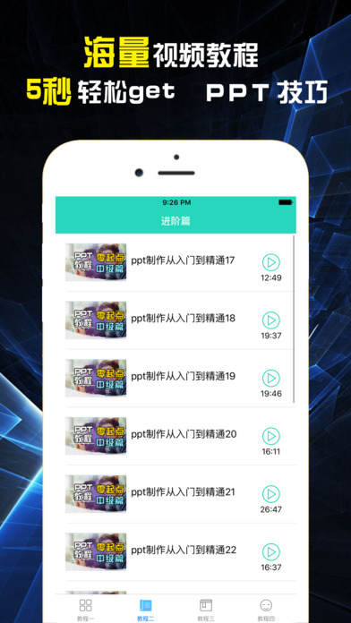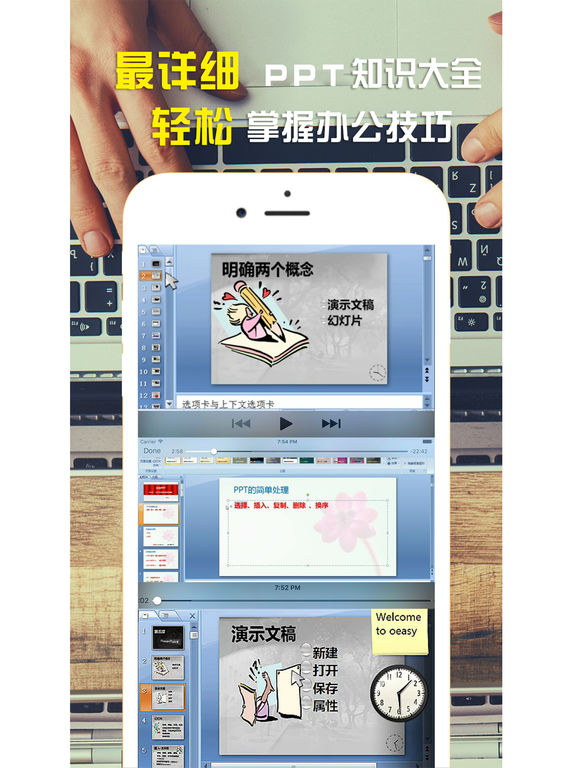 PPT教程-Microsoft office Powerpoint是微软公司设计的演示文稿软件。可以在投影仪或者计算机上进行演示,PPT制作已经成为办公室必备技能之一。 PPT不是简单的文字、图片的堆砌。而要上升到艺术的高度,您想让自己的PPT做得更好吗?来吧,跟着教程的节奏,让你成为PPT高手。从基础开始,细致入微向您讲关于PPT制作的每一个细节。 每天学习一点ppt,让幻灯片/演示文稿变简单。