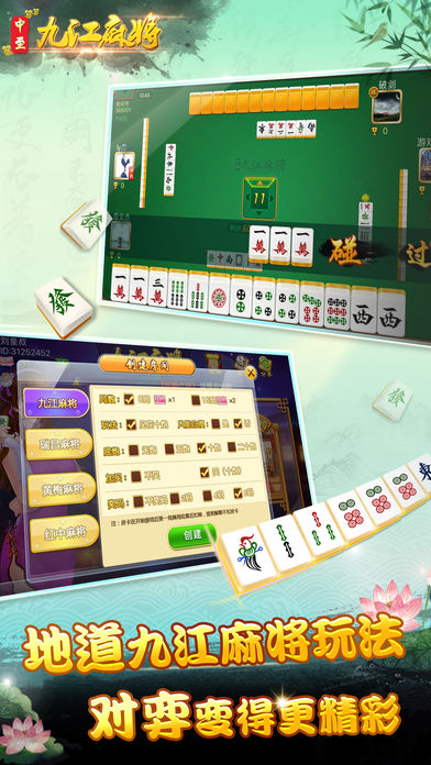 一款熟人约局的九江麻将社交游戏,可创建房间与现实中好友对战畅玩。分享到朋友圈,战绩炫耀等功能。