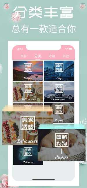 精选最新最热的高清精美壁纸,让您紧跟潮流壁纸的步伐; 海量图片资源,分类清晰明确,快速定位自己的爱好, 找到自己想要的那一款,便捷又高效! 新增图片处理功能,滤镜贴纸随心配,定制自己的专属壁纸! iPhone全机型覆盖,所有壁纸都做了完美适配,保存后即可直接使用!