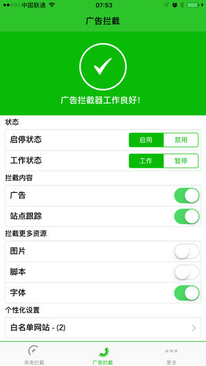 #广告拦截器,顾名思义,是一款广告拦截应用,它能有效拦截您的iPhone或iPad浏览器里的广告,为您节省流量,并加快网页访问,进而减少电池用量。根据我们做的样本统计分析,使用本应用后,浏览网页时平均加载速度提高40%,流量减少50%,电量用时可延长30%或更多。 #来电防火墙,顾名思义,是一款电话,短信拦截应用,它能有效拦截诈骗,骚扰,推销,一声响,黑名单等垃圾电话。 现在,它们合二为一了。为您节省一个桌面图标。还节省一点费用。 【功能列表 - 广告拦截】 1、为中国用户量身订制,更懂中国人,更适合中国国情,能有效拦截国内外几乎所有广告。 2、网页搜索广告拦截:当您搜索时隐藏广告部分,…