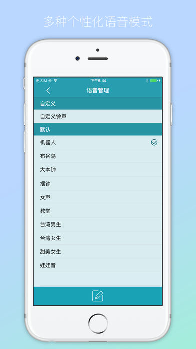 整点报时是一款帮助你管理你的日常提醒的好帮手!每个整点(正点),实时的人工语音播报,不用打开手机,你就能准确把握时间, 提醒自己不要错过时间. 主要特色: * 一键开关整点报时 * 自定义时间的声音提醒 * 精选多种语音报时,自由选择 * 有趣的小工具,每小时以人声报时,就像报时器一样。 * 简洁易用,方便省心 * 后台服务只需少量资源即可执行,非常省电。