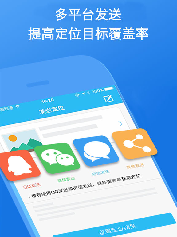 首先郑重声明:请不要使用本软件从事不合法的事,我方不承担任何责任,本平台主要方便找回家人,好友间娱乐使用。 (注意:本软件无法手机号码定位) 最简单的找人:机场接人,找不到朋友,亲人,旅游和朋友分开走失, 一键发送定位请求,获取对方位置导航去朋友亲人的位置。 支持微信,QQ,短信,邮件等方式发送定位。 支持苹果地图导航到对方位置,支持定位收藏。 本软件生成一个授权获取位置的定位链接,定位链接被对方打开获取对方授权后,位置就可以直接反馈给您。 定位成功推送提醒功能,让您用的更加舒心。