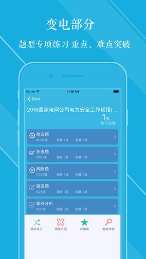 本软件为国家电网公司安规考试精心准备的最新考试题库,包含线路、变电、配电三部分,以上均为2017年最新题库。综合分析最新考试信息、把握近几年考试的发展趋势,分为单选、多选、判断、简单题等不同类型试题。 【功能介绍】 1、专项练习,分线路、变电、配电部分试题。 2、随机练习,可对线路、变电、配电部分试题进行随机练习。 3、错题库:可自动加练习过程中错题加入收藏,以便反复练习。 4、收藏夹:可在练习过程中自行收录题目到收藏夹,形成自己的小题库,针对性练习,提高通过率。 5、题目检索:可按题目关键字进行试题检索。 6、安装后可离线浏览,不用联网也可以浏览,速度快,无广告、无插件。 7、…