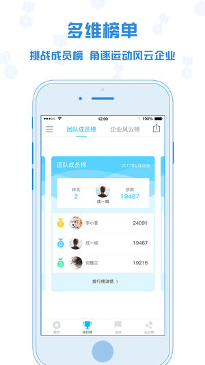 企业咕咚是国内知名的运动社交app“咕咚”的针对企业端的产品。企业咕咚通过好玩有趣的形式,提供给企业或者团体组织运动激励的方法,让团队成员形成良好的运动习惯,同时使得成员之间的联系更加紧密。 「运动监测」全天24小时记录运动量,统计碎片化化运动数据,为自己制定每天的运动目标,达成与否一目了然; 「个人挑战」可发起对团队任一成员的挑战,可挑战老板,心仪的MM等,整个企业可进行围观和加油; 「团队活动」企业管理员可发起个人赛,团队赛,目标赛,标准赛等多种活动,并与企业福利相结合,用运动提升企业的团队文化和战斗力; 「趣味榜单」企业根据需求建立团队的运动榜单,每天去看看谁“榜上有名”。