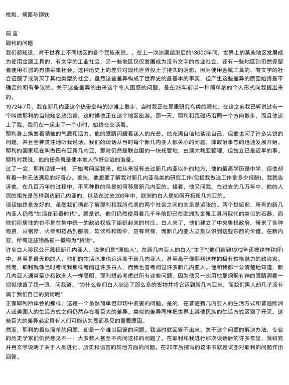 《枪炮、病菌与钢铁:人类社会的命运》(Guns, Germs, and Steel: The Fates of Human Societies)是由美国加州大学洛杉矶分校医学院生理学教授贾德·戴蒙于1997年所著。该书于1998年获得普利策奖以及英国科普书奖。国家地理学会根据本书拍摄的纪录片于2005年7月在美国公共电视网播出。 根据作者,本书试图提供“最近13,000年来所有人的简短历史”。但本书并不只是描述过去历史的书;它试图解释为何欧亚文明最终可以存活下来并战胜其他文明,同时驳斥欧亚霸权是由欧亚知识份子或道德上的优越而来。戴蒙认为人类社会中权利与技术的歧异无法反映文化或种族上的差异,而是来自于被各种不同正回馈循环强力扩大的环境差异