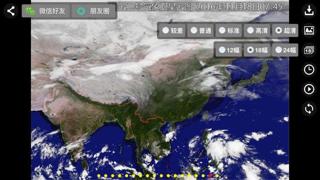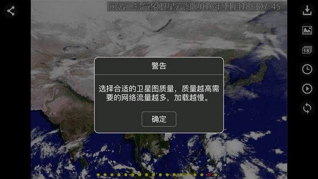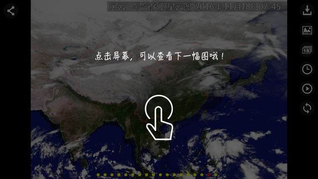 看卫星云图,您也可以预知未来的天气趋势。利用卫星云图可以识别不同的天气系统,确定它们的位置,估计其强度和发展趋势,为天气分析和天气预报提供依据。云图来自中央气象台,但在不影响图片质量下进行了压缩,所需下载流量小。