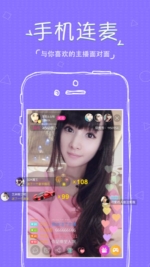 陌秀直播是一个全民手机直播交友App,满足反映客户所有直播需求,超过17项功能,高颜值帅哥美女约会神器,麻过花椒、甜过蜜枣,是陌生人之间的视频利器!360度全方位的真实交友,不再YY,触手可得。更多更新更快播出你想看的直播,告别孤单,玩到不停! 它可以媲美秀色、全民K歌、KK唱响、酷狗繁星、小咖秀等产品,并且还能交友排遣寂寞,类似于陌陌、唱吧等! 午夜直播,真人在线视频聊天交友热舞秀场云集众多俊男靓女为你倾情演绎。 【特色功能】 观看直播:主播为你视频直播K歌唱响,表演逗趣,喊麦搞怪,永久免费欣赏。 聊天交友:无论你生于何时,身处何方,此时此刻我们欢聚一堂,悄悄话,小喇叭…