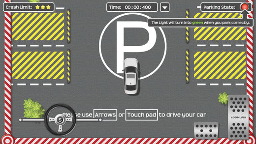 Hey, let's park your car. No matter if backwards, frontwards or parallel, just avoid to exceed the crash limit of three times of your vehicle. So let's see how fast you can drive your vehicle into a parking spot.