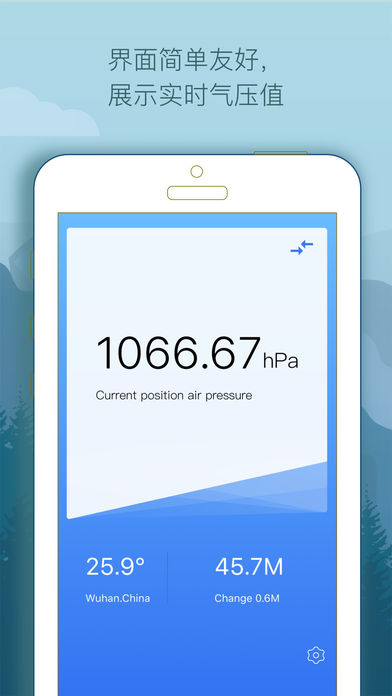 气压计是一款外出旅游、户外达人的必备的实用软件,让你获取所在地的实时气压、温度、海拔、GPS位置等信息。 主要特点: - 界面简单友好,展示实时气压值 - 历史记录功能,可查看最近7天的气压数值 - 多种气压单位可供选择:hPa,mbar,mmHg,inHg,psi,atm等。 - 显示温度和位置信息 - 显示海拔高度及相对高度数值 万能气压计可用于户外活动,如登山,徒步等,是旅游出行的好帮手,还等什么呢?赶快下载使用吧!
