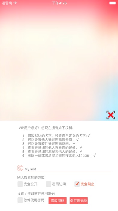最后1天,最低价促销,机会不容错过! 您也许很想知道最近谁在搜索您在哪里,也许您很想知道某个人现在在哪里?也许是您的家人、朋友,哪怕是一个陌生人,这个软件都能帮助您实现这一切。 1,直观显示有哪些人正在查看您的位置; 2,能通过地图实时查看您正在搜索的人的位置; 3,查看您搜索的人的最近多个位置; 4,您可以设置他人只能通过输入您设置的密码才能查看您的位置; 5,您也可以设置不让任何人查看您的位置; 6,您还可以设置软件打开需要密码保护; 7,您可以匿名查看别人的位置;