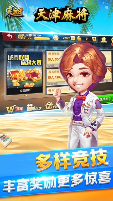 来游戏官方全新力作,引领棋牌手游新时代! =====游戏简介===== 天津麻将-来游戏,以天津地区流行的麻将规则为蓝本开发的一款地方麻将游戏。在游戏中完整的保留了天津麻将的游戏元素,提留、混吊、双混吊、捉5、龙等特点。灵活的玩法配合来游戏的3D界面,欲罢不能。 =====游戏特色===== 【包房】新增特色包房,灵活创建房间,邀请好友竞技一决高下 【回放】边录像边玩牌,牌局回放功能让你在回顾牌局的时候还能炫耀牌技 【比赛】更多赛事活动搭配精美礼品,用惊喜回馈用户 【角色】结合手游经典RPG,带着你的MM上牌桌,享受暴击快感 【宝箱】多样钥匙开启多种宝箱,欢乐多多惊喜不断 ====联系我们==== 微信公众号:laiyouxi 客服电话:4000051827 >>来游戏——Unity3D引擎打造的休闲竞技类游戏平台,给您身临其境的3D游戏体验<<
