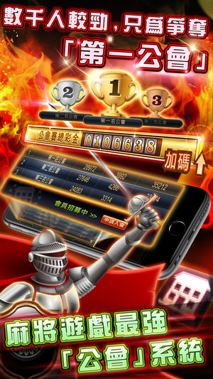 全國首創競技式麻將遊戲 遊戲特色 ※出牌滑順好操作,單手玩牌超輕鬆! ※千人同場較勁,即時排名一決勝負! ※一鍵開打免等待,立即開賽快速進場! ※智慧型聽牌提示,大幅提升胡牌機會! ※免費定時賽發獎不間斷、金幣無限補充! ※首創快速賽,胡牌定勝負,二分鐘拚一場、打完收工! ※特殊競賽天天有,豪氣贈獎逾千萬,傲視業界誰與爭鋒! ※鎩羽戰敗免懊惱,立即復活再戰一場! ※登入簽到送獎勵,金幣虛寶輕鬆拿! ※幸運寶箱試手氣,送你元寶、銀錠和金幣! ※公會戰隨身打,最新戰況不漏接,你就是致勝關鍵! ※刮刮卡種類眾多,中獎機率100%,刮完立即得獎! ※即時聊天室供你聊天話家常、不怕已讀未回惹爭議! ※…