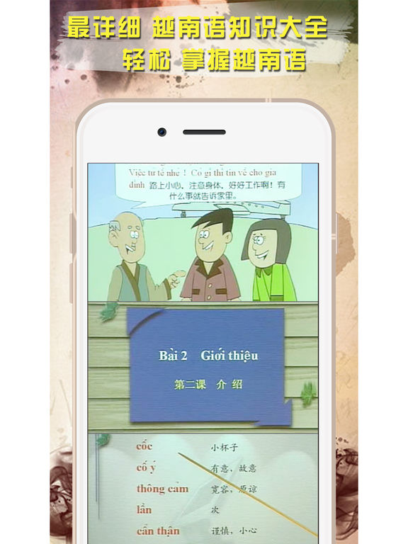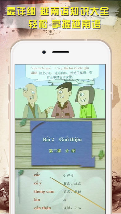 学越南语集收录了超过800句常用的短语和词汇,语法,和各种场景对话教学,练习您的阅读和聆听能力,你将会发现学习越南语原来是如此简单容易。 • 收录常用的越南语短语和词汇 • 提供正宗的发音 • 支持录制与比较自己的发音 • 储存和管理自己收藏的短语 • 实时以关键词搜索任何内容