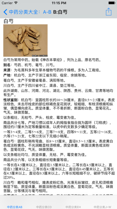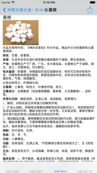 中药参考大全,给力推荐。 内容涵盖了500~600中中草药详细介绍大全。 十分适合中医人士们参考了解。 按拼音索引包含: -----A:阿胶、阿魏、艾叶、安息香、 -----B:巴豆、白毛夏枯草、柏子仁、白花蟛蜞草、白茅根、败酱草、荜拨、巴戟、白花蛇舌草、白芍、荜澄茄、霸王花、半边莲、白背木耳、白芥子、白头翁、半枫荷、白鹤藤、白花丹; -----C:苍耳草、车前子、川芎、沉香、穿破石、草果、赤芍、穿心莲、草寇、茺蔚子、蝉蜕、菖蒲、楮实子; -----D:大飞扬草、大头陈、倒扣草、大叶芙蓉、丹参、地榆、淡竹叶、当归、东风桔、冬虫夏草、杜仲; -----E~G:鹅不食草、儿茶、莪术、茯神、枫香树寄生、浮萍、凤仙花、茯苓、翻白草、风沙藤、伏龙肝、钩藤、过江龙、狗肝菜、甘草、龟板、葛根、瓜蒌 -----H:海金沙、海桐皮、合欢皮、何首乌、槐花米、黄芩 -----J:鸡骨草、井栏荽、决明子、金银花 -----K:苦丁茶、宽筋藤; -----L:连翘、灵芝、鹿茸、 -----M:马鞭草、麦芽、蔓荆子、 -----N:柠檬叶、牛黄 -----P:爬山虎、胖大海 -----Q:芡实、茜草 -----R:肉桂、如意草、榕树须 -----S:三七、沙苑子、锁阳、粟米须、檀香、天麻、乌榄根、芜荑