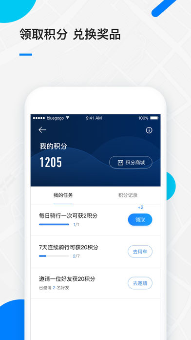 「小蓝单车」- 好骑自有范儿 这是一场优质生活的体验,让每次出行都轻松有趣 生活中出行遇到的问题: - 通勤上班时,乘坐拥挤的公共交通工具 - 出门打车时,拥挤的城市道路寸步难行 - 旅游出行时,因赶路而错过沿途的风景 「小蓝单车 - bluegogo」解决的方式: - 共享单车模式,享受最佳的出行体验 - 拒绝交通拥堵,让出行变的更有价值 - 无固定桩设计,享受随时随地停车 - 一键扫码解锁,让操作变的更简单 - 轻巧车身设计,让骑行更轻便时尚 「小蓝单车 - bluegogo」核心功能: • 实时车辆地图 车辆实时定位,导航引导到达 • 享受提前预约 提前预约周边单车,掌握行程安排 • 一键扫码解锁 扫描车身二维码,即刻解锁用车 • 随时随地轻松还车 无固定车桩,停放在任意公共停车区域即可还车 「联系我们」 客服电话:400-800-3898 客服邮箱:feedback@bluegogo.com 微信:xiaolandanche QQ群:279021564 温馨提示: 小蓝单车导航功能会持续使用GPS定位进行记录,会显著缩短电量,切换后台运行时,仍会影响电池续航时间; Disclaimer: Continued use of GPS running in the background can dramatically decrease battery life.