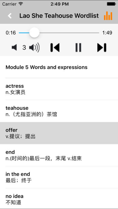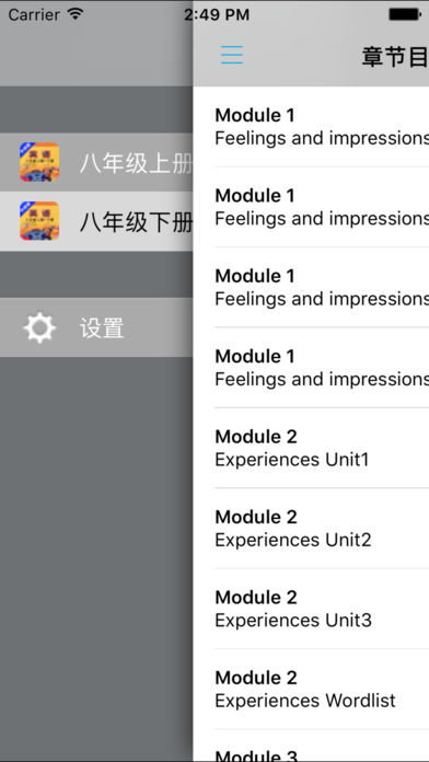 *全套原版录音和教材完全同步,助您成为英语大明星。 *根据课本配套,此应用为外研社新标准初中英语八年级上册、下册完全最新版。 *涵盖全部内容,包括全部课程对话和常用句子、单词列表、复习章节等。 *操作简便、携带方便,永远告别磁带和光盘。 【新梦想】教育应用系列完全同步教材制作,内容完全一致,您可以使用它来进行课文学习,播放教材配套音频,发音纯正地道,寓教于乐,让学习更高效和有趣。 该应用界面简洁操作简单,让孩子在舒适的环境下学习,能点,能读,更能说,是小朋友的好老师、好家长。 功能特色 ■中英文双语对照,同步语音,准确清晰。 ■内容与录音质量放心,地道纯正、原汁源味。 ■语音播放灵活,即点即学,跟读模仿随时随地。 ■完全同步教材制作,内容完全一致。 ■后台播放人性化,锁屏状态可随身听读。 ■界面简单大方,意图明了,功能实用,操作方便。 用我们的责任心、爱心、细心地去点燃学生们的梦想,让有梦想的孩子们慢慢的变化!学习成绩逐步提高,慢慢的,他们又有了新梦想,如此反复...... 让中学生中英文双语对照,发音准确清晰,是小朋友自学的好老师,把家长从繁琐的辅导解答中解放出来! 【新梦想】教育应用系列,快乐中学习,轻松点一点,英语真容易! —【新梦想】教育应用系列— 适用于多种教学场景,您可以更加便捷地进行碎片化学习,期待您的使用! 致力于为中国K12教育提供最优秀的互联网教育软件! 新梦想乐园,伴随青少年健康快乐的成长! *****软件功能***** 1.通用应用,同时支持iPhone,iPod touch,iPad设备 2.可以自动顺序播放功能 3.可以自动记录播放位置,不用担心下次找不到听到哪 4.支持离线播放,即使不联网也一样听,到哪都不怕 5.支持手动拖拽前进、后退播放 6.在兼顾软件容量以及更多课程的情况下,我们最大限度保证音频的高质量,每个有声读物片段都是经过我们精选和亲测 7.最最重要的功能,可以拖动字幕定位,音频随之定位 本应用与《义务教育教科书外研社新标准初中英语八年级上册、下册》课本同步 新版目录(八年级上册): Module 1 How to learn english Module 2 My home town and my country Module 3 Sports Module 4 Planes,ships and trains Module 5 Lao she teahouse Module 6 Animals in danger Revision module A Module 7 A famous story Module 8 Accidents Module 9 Population Module 10 The weather Module 11 Way of life Module 12 Help Revision module B 新版目录(八年级下册): Module 1 Feelings and impressions Module 2 Experiences Module 3 Journey to Space Module 4 Seeing the doctor Module 5 Cartoons Revision module A Module 6 Hobbies Module 7 Summer in Los Angeles Module 8 Time off Module 9 Friendship Module 10 On the radio Revision module B
