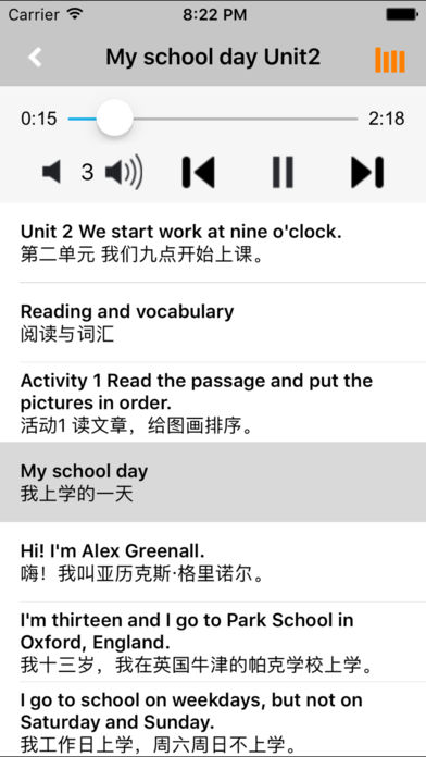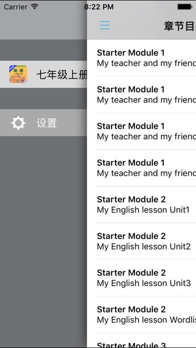 *全套原版录音和教材完全同步,助您成为英语大明星。 *根据课本配套,此应用为外研社新标准初中英语七年级上册完全最新版。 *涵盖全部内容,包括全部课程对话和常用句子、单词列表、复习章节等。 *操作简便、携带方便,永远告别磁带和光盘。 【新梦想】教育应用系列完全同步教材制作,内容完全一致,您可以使用它来进行课文学习,播放教材配套音频,发音纯正地道,寓教于乐,让学习更高效和有趣。 该应用界面简洁操作简单,让孩子在舒适的环境下学习,能点,能读,更能说,是小朋友的好老师、好家长。 功能特色 ■中英文双语对照,同步语音,准确清晰。 ■内容与录音质量放心,地道纯正、原汁源味。 ■语音播放灵活,即点即学,跟读模仿随时随地。 ■完全同步教材制作,内容完全一致。 ■后台播放人性化,锁屏状态可随身听读。 ■界面简单大方,意图明了,功能实用,操作方便。 用我们的责任心、爱心、细心地去点燃学生们的梦想,让有梦想的孩子们慢慢的变化!学习成绩逐步提高,慢慢的,他们又有了新梦想,如此反复...... 让中学生中英文双语对照,发音准确清晰,是小朋友自学的好老师,把家长从繁琐的辅导解答中解放出来! 【新梦想】教育应用系列,快乐中学习,轻松点一点,英语真容易! —【新梦想】教育应用系列— 适用于多种教学场景,您可以更加便捷地进行碎片化学习,期待您的使用! 致力于为中国K12教育提供最优秀的互联网教育软件! 新梦想乐园,伴随青少年健康快乐的成长! *****软件功能***** 1.通用应用,同时支持iPhone,iPod touch,iPad设备 2.可以自动顺序播放功能 3.可以自动记录播放位置,不用担心下次找不到听到哪 4.支持离线播放,即使不联网也一样听,到哪都不怕 5.支持手动拖拽前进、后退播放 6.在兼顾软件容量以及更多课程的情况下,我们最大限度保证音频的高质量,每个有声读物片段都是经过我们精选和亲测 7.最最重要的功能,可以拖动字幕定位,音频随之定位 本应用与《义务教育教科书外研社新标准初中英语七年级上册》课本同步 新版目录: Starter Module 1 My teacher and my friends Starter Module 2 My English lesson Starter Module 3 My English book Starter Module 4 My everyday life Module 1 My classmates Module 2 My family Module 3 My school Module 4 Healthy food Module 5 My school day Revision Module A Module 6 A trip the zoo Module 7 Computers Module 8 Choosing presents Module 9 People and places Module 10 Spring festival Revision Module B