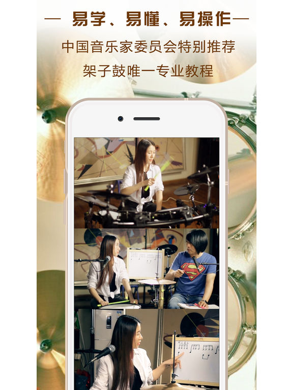 根据现实所存在的情况,为了让更多的学员轻松学会架子鼓,我们特别精心打造了一部视频教程。本教程以通俗易懂的语言、丰富多彩的画面一步步示范。 它不仅用于自学者,也是学校、短期培训班在教学中主要学习教程。教材适合不同年龄段人学习,不管你是几岁小孩,是事业有成的朋友,是退休的长辈都能快速掌握 。