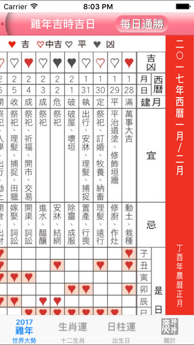 内容包括2017鸡年世界大势总述、肖鸡大解说、鸡年十二生肖运程、「个人出生日」运势预测、犯太岁化解锦囊、鸡年行好运风水佈局、鸡年吉凶方位、家居全方位风水阵、简易风水阵、办公室秘密风水阵、过年习俗知识、鸡年吉时吉日、每日通胜、繁简体转换功能。 作者简介: 麦玲玲自幼跟随名师学习术数,对手相、面相及子平八字等术数均甚有研究,尤其精於推算姻缘。麦玲玲除了为多间著名机构担任风水顾问,也时常应邀到国内及东南亚各地作风水勘察,乃全国最受欢迎堪舆学家之一。 麦玲玲多年来常接受媒体采访,并在各大报章杂誌先後撰写过不同的风水命理专栏,包括《东方新地》、《U Magazine》、《东周刊》、《太阳报》、《头条日报》、《南方都市报》、《羊城晚报》、《安邸AD》及《时尚‧COSMOPOLITAN》等,更多次获邀担任各大电视台及电台的节目嘉宾,如电视广播有公司(TVB)、香港有线电视(Cable TV)、湖南卫视、凤凰卫视、广东卫视等等。 麦玲玲著作甚丰,除一年一度、读者翘首以待的流年运程书外,其他已出版的著作还包括《面相天书(岁数篇)》、《置业风水天书》、《玄学速解大全》、《女人都是这样谈情的》、《爱情自救》、《家居开运》、《生肖百科》、《嫁得好》、《好运99》、《礼俗文化大全》及《好房子‧好风水 设计手册》等玄学专书,更配合时代步伐,推出电子运程书以供下载,广受欢迎。 为推广正确的风水知识及满足广大需求,麦玲玲近年更自设吉祥用品网店及实体店「吉庆堂」,全国只此一家,以求广结善缘,帮助各人趋吉避凶。 相馆地址:香港中环德辅道中20号德成大厦13楼1309室(中环地铁站C出口) 预约电话:(852) 2868-9499 图文传真:(852) 2501-5788 电邮地址:88@maklingling.com.hk 官网: http://www.maklingling.com.hk 微博:http://weibo.com/88mailingling 麦玲玲吉庆堂官网店:http://www.jiqingtang.hk 麦玲玲吉庆堂淘宝店:http://mlljqt.taobao.com 麦玲玲吉庆堂广州店:广州市越秀区中山叁路33号中华广场首层1053铺