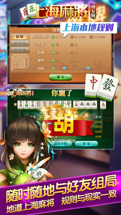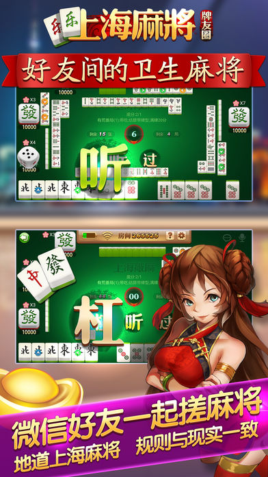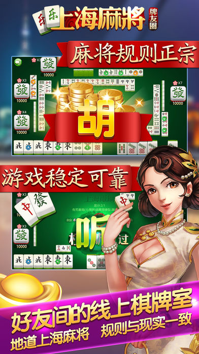 《乐乐上海麻将-清混碰百搭敲麻打牌圈》提供最地道的上海麻将玩法,绝对本地麻将,是有地道上海话配音的麻将,游戏画面清新靓丽,老上海风格带你回到纯正的沪上棋牌室。提供熟人牌友一起麻将的娱乐环境,想不玩都不行。最给力的上海麻将,朋友快点下载,奥扫! 上海麻将清混碰:采用上海地区最流行的清混碰打法,必须至少从碰碰胡及以上的番型才允许胡牌,番型简单易懂,节奏较慢,技巧性较大,有独特的花分设计和封顶(勒子)的规则。 《乐乐上海麻将-清混碰百搭敲麻打牌圈》还将陆续更新添加最地道的上海百搭、敲麻玩法,上海斗地主(三打一)等沪上本地棋牌玩法,敬请沪上牌友关注期待。 这里将是您自己运营的网络棋牌室,这里都是您熟悉的亲朋好友,同学故旧。 游戏特色 1:登录就送游戏钻石,诚意满满。 2:无需注册立刻体验,告别复杂操作时代。 3:输赢和翻番模式和实际上海麻将规则和计算方式相当,凸显本土特色。 4:让牌友无论在天南地北都能在一起战斗,熟人牌友线上社交圈。 今年最有诚意的上海本地麻将,沪上棋牌首选!