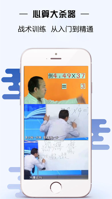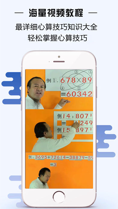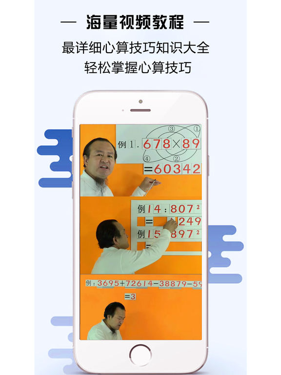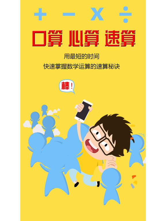 心算技巧 已更新为iPhone和iPad通用版共36种运算技巧 介绍了包括加、减、乘、除和平方等多种形式的速算技巧,让你不用计算器和草稿也可以快速准确的计算出多位数乘法和平方的结果。熟练掌握心算的技巧足以让你拥有让普通人乍舌的心算能力。 ●示例: 十位相同,个位互补的两位数乘积(互补:两个数相加为10,100,1000...) 38×32=1216 ①:十位数先加1,再与该十位数相乘 (3+1)×3=12 ②:将第①步所得结果后添加两个0 12<—00=1200 ③:将两个数的个位数相乘 8×2=16 ④:将第②步和第③步所得的结果相加 1200+16=1216 ●快速平方: 由n个1组成的数的平方 由n个3组成的数的平方 由n个6组成的数的平方 由n个9组成的数的平方 个位数是1 的数的平方 个位数是5的数的平方 个位数是9的数的平方 十位为0的三位数的平方 求末两位是25的数的平方 求十几的平方 求二十几的平方 求三十几的平方 求四十几的平方 求五十几的平方 求六十几的平方 求七十几的平方 求八十几的平方 求九十几的平方 求一百多的平方 求二百多的平方 求三百多的平方 求四百多的平方 求五百多的平方 求六百多的平方 求七百多的平方 求八百多的平方 求九百多的平方 ●基本四则技巧: 十位相同,个位互补(a+b=10)的两位数乘积 十位相同,个位不互补的两位数乘积 个位相同,十位互补的两位数乘积 个位相同,十位不互补的两位数乘积 一个数十位与个位互补,另一个数十位与个位相同 一个数十位与个位互补,另一个数所有位相同 任意数乘以11 个位为1的两位数乘法 十位为1的两位数乘法 任意两位数乘两位数(通用法) 相差为5的两个数相乘 相差为6的两个数相乘 相差为7的两个数相乘 相差为8的两个数相乘 相差为9的两个数相乘 相差为10的两个数相乘 两个九十几的数相乘 任意数乘以5 任意数乘以9 任意数乘以99 一个数除以5的商 一个数除以25的商 一个数除以125的商 一个三位数数除以9的商 两个数字位置变换两位数的和 求只是首尾换位,中间数相同的两个三位数的和 分子为1的两个分数之和 求分子比分母小1的两个分数的和 前n个奇数的和 前n个偶数的和 求只是数字位置颠倒两个两位数的差 求只是首尾换位,中间数相同的两个三位数的差 求互补两个数的差 分子为1的两个分数的差 分子相同的两个分数的差 分子比分母小1 的两个分数的差