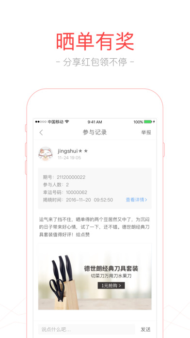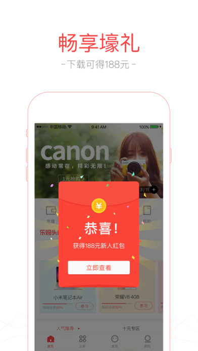 1元乐购,为用户提供全新的购物模式和娱乐体验。您只需花费1元,就有机会获得时下诸多热门商品,玩法创新,每时每刻,充满惊喜。 应用描述 【全新体验】 每件商品,最低1元可得,人人都有机会; 【新人红包】 新人特权,畅享壕礼,下载可得68元红包; 【商品丰富】 从家电数码、日用百货、个护化妆到流行潮品,琳琅满目的商品任你挑选; 【公平公正公开】 公平:所有参与用户均1元起购。 公正:根据全站所有商品的参与记录计算幸运号码。 公开:揭晓过程和计算方式完全透明。 【分享喜悦】 紧张刺激的等待过程之后,马上与朋友分享获得商品的喜悦~ (特别声明:本应用的所有活动与内容跟苹果公司无关)