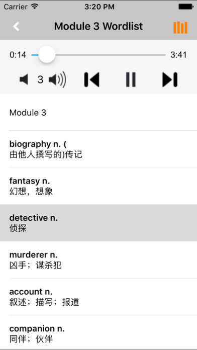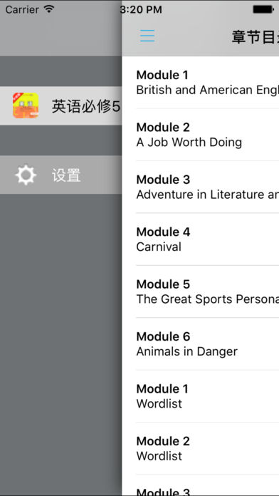 *全套原版录音和教材完全同步,助您成为英语大明星。 *根据课本配套,此应用为外研版新标准高中英语必修5完全最新版。 *涵盖全部内容,包括全部课程对话和常用句子、单词列表、复习章节等。 *操作简便、携带方便,永远告别磁带和光盘。 【新梦想】教育应用系列完全同步教材制作,内容完全一致,您可以使用它来进行课文学习,播放教材配套音频,发音纯正地道,寓教于乐,让学习更高效和有趣。 该应用界面简洁操作简单,让孩子在舒适的环境下学习,能点,能读,更能说,是中学生的好老师、好家长。 功能特色 ■中英文双语对照,同步语音,准确清晰。 ■内容与录音质量放心,地道纯正、原汁源味。 ■语音播放灵活,即点即学,跟读模仿随时随地。 ■完全同步教材制作,内容完全一致。 ■后台播放人性化,锁屏状态可随身听读。 ■界面简单大方,意图明了,功能实用,操作方便。 用我们的责任心、爱心、细心地去点燃学生们的梦想,让有梦想的孩子们慢慢的变化!学习成绩逐步提高,慢慢的,他们又有了新梦想,如此反复...... 让中学生中英文双语对照,发音准确清晰,是中学生自学的好老师,把家长从繁琐的辅导解答中解放出来! 【新梦想】教育应用系列,快乐中学习,轻松点一点,英语真容易! —【新梦想】教育应用系列— 适用于多种教学场景,您可以更加便捷地进行碎片化学习,期待您的使用! 致力于为中国K12教育提供最优秀的互联网教育软件! 新梦想乐园,伴随青少年健康快乐的成长! *****软件功能***** 1.通用应用,同时支持iPhone,iPod touch,iPad设备 2.可以自动顺序播放功能 3.可以自动记录播放位置,不用担心下次找不到听到哪 4.支持离线播放,即使不联网也一样听,到哪都不怕 5.支持手动拖拽前进、后退播放 6.在兼顾软件容量以及更多课程的情况下,我们最大限度保证音频的高质量,每个有声读物片段都是经过我们精选和亲测 7.最最重要的功能,可以拖动字幕定位,音频随之定位 本应用与《普通高中课程标准实验教科书外研版新标准高中英语必修5》课本同步 新版目录: MODULE 1 British and American English MODULE 2 A Job Worth Doing MODULE 3 Adventure in Literature and the Cinema MODULE 4 Carnival MODULE 5 The Great Sports Personality MODULE 6 Animals in Danger MODULE 7 Revision Appendices Notes to the Texts Grammar Words List