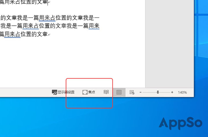 当然,你也可以在 Word 最下方点击「焦点」来进入这个模式。