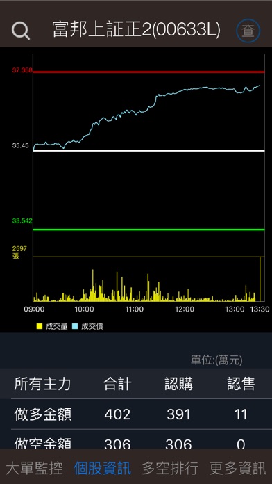 超過70萬權證玩家愛用的監控軟體,推出APP囉! 權證小哥獨門研發,讓你在第一時間掌握大戶資金的進出,即時搭上主力賺錢順風車! 主要功能:權證盤中大單監控、統計權證多空金額、權證主力資金流向 理財寶為投資人打造最強的權證APP!