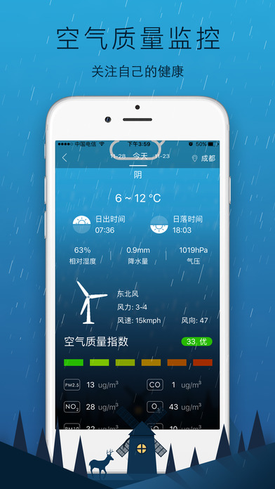 和风天气采用权威数据源授权信息,拥有国内外3000多个城市与700多个景区的天气预报和实时天气预警信息;更可查看大城市的逐小时预报以及2162个县市空气质量指数。 **特色功能** 空气质量——涵盖2162个县市的实时空气质量指数;并加入5天雾霾预报。 实况背景——阴晴雨雪的城市风景,匹配实时天气状况,给您更直观的天气呈现。 预报信息——24小时天气及温度预报;未来天气信息及趋势对比;支持2486个国内城市区县和676个国际城市。 短时预报——精准、及时预报您当前所处位置天气情况,关注你头顶每一朵云的改变。 生活助手——当日天气、穿衣贴士、出行建议,您关心的正是和风所关注的。