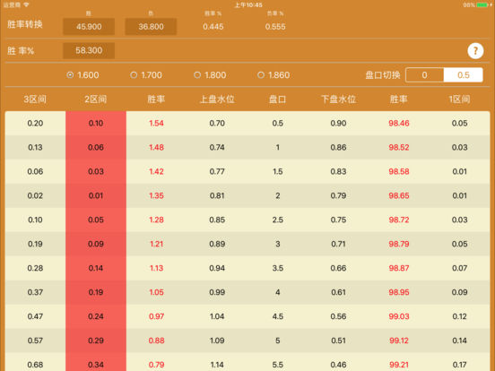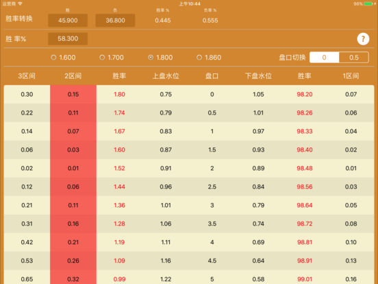 经过6年不断的测试和完善而开发出来的一款可以说是划时代或者革命性的亚盘解盘软件。软件通过合理盘口和不合理盘口之间的间距,利用了市场经济学原理和物理力学原理,整合出了一套完善的理盘理论。 本软件在前辈们研究的基础上面,更深层次把筹码的强弱判断延伸到了具体的水位位置的判断。比起笼统的文字 ,本软件把实实在在的水位数字展现在每一位玩家的面前,让玩家在判断比赛的时候心里面更有底气。 希望所有有兴趣研究亚盘的玩家,在使用本套软件研究亚盘的过程中体会足球比赛带来的喜怒哀乐。