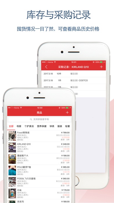 代购助手为微商、代购提供订单记录、记账、算账、库存和囤货、物流追踪等功能。 -快速录单,手势操作标记订单收款、备货、发货状态。 -汇率设置,进货成本币种设置,专为代购定制。 -囤货/库存管理,采购记录。 -商品数据导入导出,好友间共享数据。 -订单导出Excel,方便快递面单打印。 -快递单条码扫描,查询快递海外、海关、国内状态。 -收款清单,备货清单,发货清单,支持AirPrint打印。 -利润计算,可按订单、按商品、按客户统计。 -数据备份与恢复,备份数据到云端。 -图形化统计。 代购助手服务使用人(以下简称“用户”)应当基于了解用户许可协议全部内容、在独立思考的基础上认可、同意用户许可协议的全部条款并按照页面上的提示完成全部的注册程序,用户的注册、登录、使用等行为将视为完全接受用户许可协议及本人公示的各项规则、规范。 本人享有对代购助手APP上一切活动的监督、提示、检查、纠正及处罚等权利。 更多许可协议内容请参见:http://daigou.365docs.net/terms 代购助手提供自动续费订阅的会员服务,订阅周期为一个月,每18元一个月。升级为会员后不再需要积分。 如果您使用信用卡支付,会员订阅每个月在到期前1天自动续费,通过您的Apple ID自动进行。如果要取消订阅,请在您的Apple ID管理里进行设置,具体方法请参看程序内帮助。 *Subscription will automatically renew each month, within 24 hours of it's expiration. Your credit card will charged through your iTunes account.To stop auto-renewal, turn off the feature in your iTunes account settings at last 24 hours prior to your subscription's expiration. Current, active subscriptions cannot be cancelled. 使用条款请参见:http://daigou.365docs.net/terms Terms of Use: http://daigou.365docs.net/terms 隐私策略请参见:http://daigou.365docs.net/privacy Privacy Policy: http://daigou.365docs.net/privacy