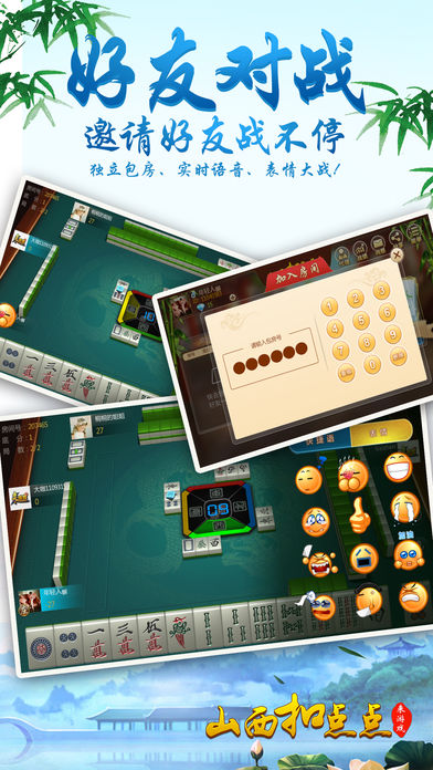 ~~~游戏介绍~~~ 【最地道】地道山西麻将玩法,可碰、杠,不能吃牌,胡牌之前需要报听。除一般番型外,特色玩法如风可以胡点炮,杠钱单独结算等,富有别致趣味性。山西人自己的配音,要玩就玩山西人自己的麻将。 【最稳定】大厂出品,确保游戏过程更加稳定,专心玩游戏,没有掉线卡顿烦恼。 【最好玩】再也不用苦于配桌,全民手机时代,你可以再手机上随时随地和亲朋好友搓麻将,是传统麻将馆的有力补充。和亲朋好友一起开房,决一高下吧! 【最靠谱】可以录像回放,同IP报警,杜绝外挂,真实可靠。 【最智能】智能提示、界面大方更具人性化,支持智能单独、分开支付房费。