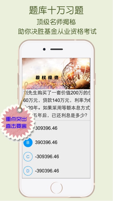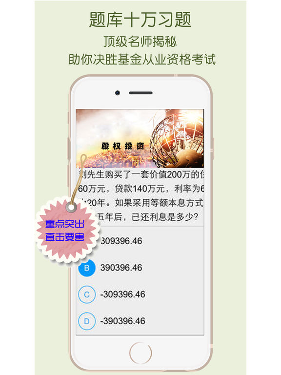 017最受基金从业考生欢迎名列前茅的理财类APP学习软件——基金从业对题库!让你在家躺着都能拿证 ,懒人必备。适配IOS10 想要通过2017基金从业考试的考生看过来,基金从业资格考试对题库中涵盖了2017年最新大纲考试试题及往年考试真题,汇聚《法律法规与道德》、《证券投资资金》、《私募股权投资基金》,按照考点、章节、真题,系统化让你高效练题,快速拿证,智能练习、答案解析、老师答疑、直播课堂。基金从业对题库,对啊网为您倾力打造,助您快速通过基金从业资格考试!摆脱题海战术。基金从业对题库是您获得资格证的不二之选! 还有一个好消息就是基金从业对题库全新改版,我们要陪你一起考基金从业资格证,300百万考生强烈推荐哦;还有10000+全国考生的五星级好评;具有丰富的教育资源,我们很认真,更用心。 2017基金考试全科目覆盖: 科目一:基金法律法规、职业道德与业务规范; 科目二:证券投资基金基础知识; 科目三:私募股权投资基金基础知识。 五大功能模块助你通过基金从业考试: 考点练习、章节练习、真题演练、直播课堂、在线答疑 形成一套基金从业最完整、最科学的学习方式,教、学、练、问,一套搞定。祝你顺利通过2017基金从业资格考试, 全新的教学体验,让你足不出户,在家躺着都能通过2017资格考试,想不通过考试都难。 【基金从业资格考试-同步最新大纲、可视化题库】 同步2017基金从业资格考试题库; 章节练习,一起学习,看完视频,刷刷题; 真题模考,全面检测自己的不足之处,有针对性的再次练习。 【基金从业资格考试-答案全方位解析】 分模块帮你清楚记录下所有做错题目。每一道都附上详细的解析,为你答疑解惑,随时查看错题、消灭错题,让你错题复习畅通无阻,为你2017基金从业考试清除所有障碍! 【基金从业资格考试-直播基金从业公开课】 北京、上海全国最优秀的基金从业老师,在线直播 在线直播,必考知识点,基金考试须知,历年真题讲解-每天坚持1小时,想不过,有点难。【基金从业资格考试-在线答疑论坛】 不问则以,一问必答,分分钟解决基金各类疑惑。 题库、视频整个学习过程中,有问题,随时提问; 不止学习问题,考试、报考相关问题,有问就有答! 【基金从业资格考试-智能分数评测】 考点全面覆盖,基金从业题库帮您定位,股票、投资明确目标,根据个人职称掌握情况智能推荐习题,证券投资、基金理财、私募股票将考点一网打尽。精准分析每个学员答题能力,对啊老师倾囊相授,助梦2017基金从业资格证考试。