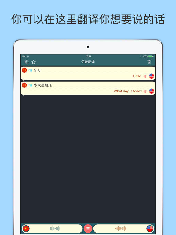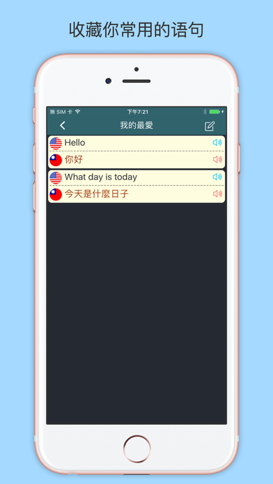 == 最后一天半价! 赶快下载吧!== 语音翻译官是一款功能强大的随身翻译工具,支持 23 种语言的实时语音翻译 【语音识别输入】 选择语种,轻轻一点即可语音输入你想要翻译的句子,即可马上得到翻译语言语音,超便捷。 超精准语音识别,再也不用一个个敲打,解放你的双手! 人多的地方不好意思语音输入?没问题!语音翻译官还支持键盘输入文本哦 【多语种在线翻译】 语音翻译官支持中文、英语、日语、韩语、法语、俄语、西班牙语等23种语言 【翻译收藏】 长按句子,即可选择修改、删除或者收藏该句子及其翻译。常用句子收藏,省时省力更省心! 【超简洁界面】 语音翻译官简洁的对话交互模式,让你体验同声传译般的流畅和快感,让语言问题不再成为障碍。 适用场合: 1. 出国旅行 世界那么大,你想去看看?别让语言成为你的障碍,语音翻译官给你一场说走就走的旅行!让你和国外当地人无障碍交流,尽情享受旅游时光。 2. 口语练习 纯正发音,随时随地纠正发音问题,让你有一口地道的外语发音 3. 日常办公 4. 外语学习 ……. 世界那么大,装上语音翻译官,一起去看看!