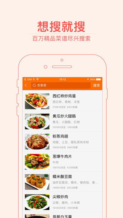 菜谱大全,汇集了来自全国各地的数十万道家常菜,并配以精美的图片,内容丰富详细,图文搭配更容易上手,页面简洁大方,超级好用,瞬间爱上了有木有! 我们的产品特色: (1)数十万精品菜谱,统统免费使用! (2)强大的搜索,帮你找到所有你想要的! (3)强大的收藏,喜欢就毫不犹豫地留住! (4)贴心的浏览记录,看过的菜谱都在这里! (5)描述详细,图片高清,做菜轻松又容易! (6)精品好菜推荐,天天都能吃出新花样! 有了菜谱大全,让你立马爱上做菜,轻松成为完美的厨房小能手! ———————来自友友们的认可——————— “挺好的软件,对于厨房小白来说,是非常棒的助手,学会做饭,想吃什么做什么……”---by 闭着眼睛流泪的姑娘 “菜谱大全很实用,我不会做菜,想吃什么先在上面查一下,再做很方便。”---by 57124689244 “很好用很详细,主要是有配图让我这个不会做饭的一目了然给个赞。”---by 周煊伟 “应用里的菜品很丰富,每一道菜的制作步骤很详细,小白一看就会,很棒!”---by HoneyWTT “为了给孩子做可口的饭菜特意下载的,同时也下载了其他软件,相对来说这款更实用,用起来也很方便,菜品也很多样,当晚就试做了两道菜,家人评价都不错,很满意。”---by 小飞鱼hxl “很不错的软件,美食可以轻松学起来,配图加文字,让吃货们学起来很方便,菜谱也很全,想吃就搜起来”---by Joe小小的幸福 “这个菜谱囊括了所有菜系,整个就是满汉全席,强烈推荐大家下载此APP,用不了多久你就是未来的厨神”---by 全本小说的秘密 ————————————————————— 感谢所有支持我们的朋友们,你们的五星好评是我们前进的最大动力!