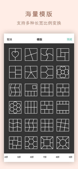“美拼相机”一款与众不同的拼图软件,独创了即拍即拼的超酷体验,前所未见的时尚拼图模版和艺术滤镜,它不仅可以选择已有的照片制作拼图,还可以在模版中直接拍照,所以您可以根据每个模版的风格,拍出完美的拼图效果。